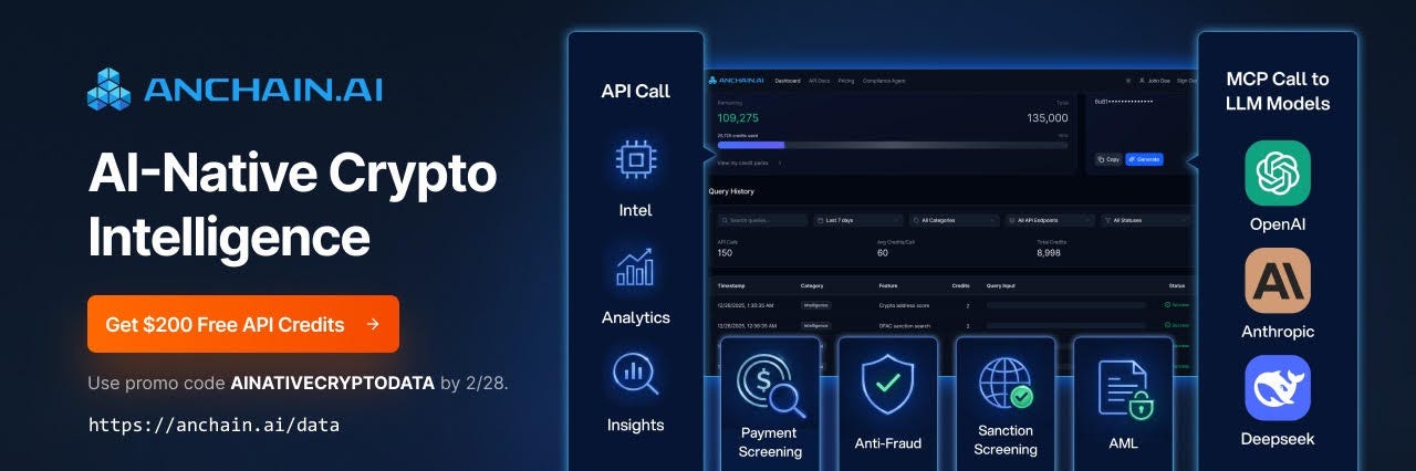 AnChain.AI Data delivers institution grade cryptocurrency data API and MCP for AML, fraud compliance, growth analytics and beyond.